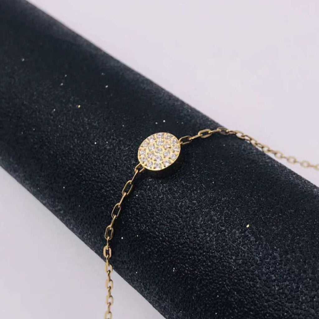Delicate Stainless Steel paper clip chain with attached rhinestone covered central piece. Vacuum plating in 14K furnace for longer color retention.